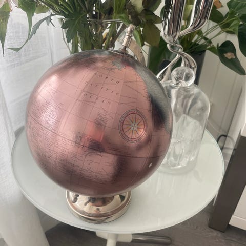 Nydelig globus i pastell toner til å henge i taket. Gamblet kart.