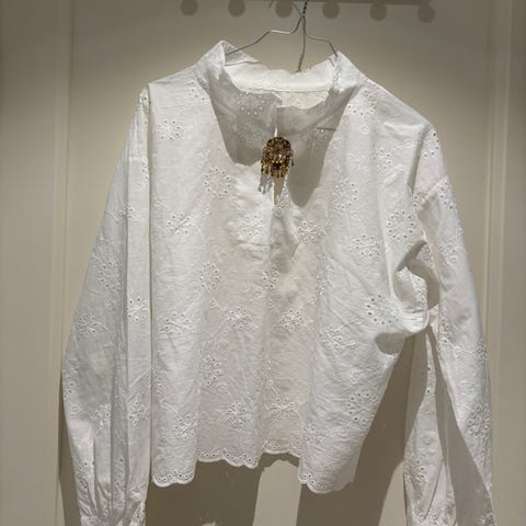 Hand kniplet blonde i lin. Bunad, festdrakt, lue, skjorte, vestfold.