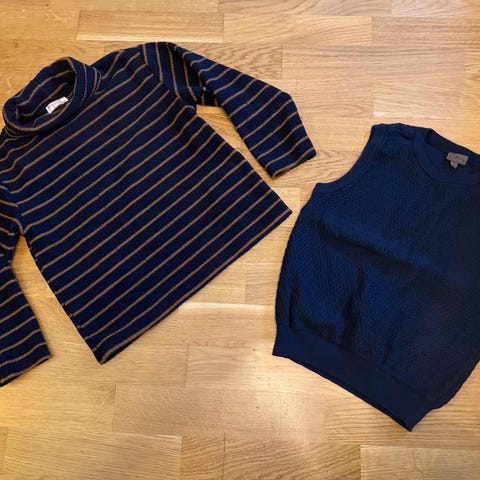 - pengenser str 104, men stor i str og den passer vår 6 åring fortsatt, så tenker den er heller en str 110 (5 år). Genseren er fra «Name it».