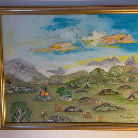 Malt i 94. Høyde 89 cm Bredde 79 bredde