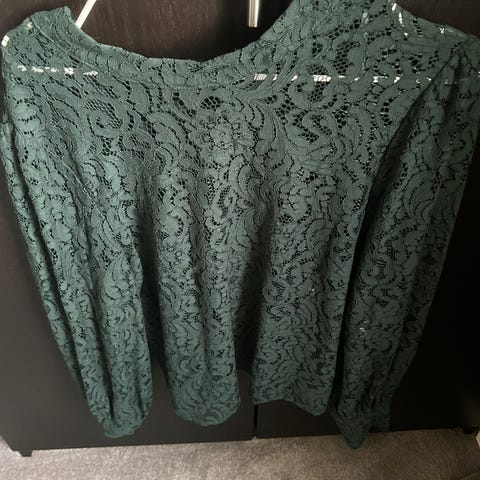 Mørk blå blonde-mønstret topp, str L (40) fra Marie Philippe. Selges kr 200,- pluss porto.