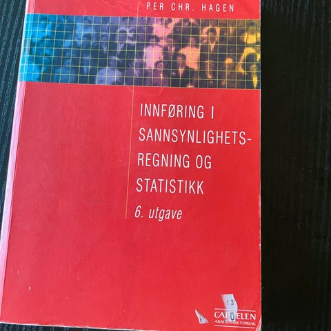 Innføring i sannsynlighetsregning og statistikk av Per Chr. Hagen, 5. utgave. Pent brukt med minimal markeringer I boka.