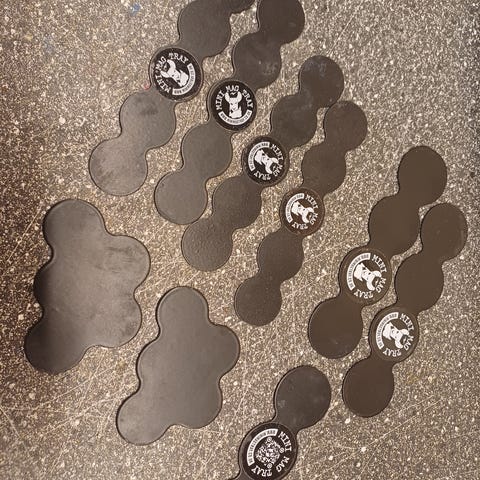 Uåpnet pakke med tre ovale selvheftende magnetark til spillbaser. Passer fint til Aos og Warhammer 40k.