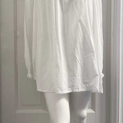 Krem hvit bluse/skjorte fra Ellos i størrelse 38/40. Syntes den sitter mer som 40/42 da jeg vanligvis bruker L og syntes denne heller mer mot litt stor enn litt liten på meg.