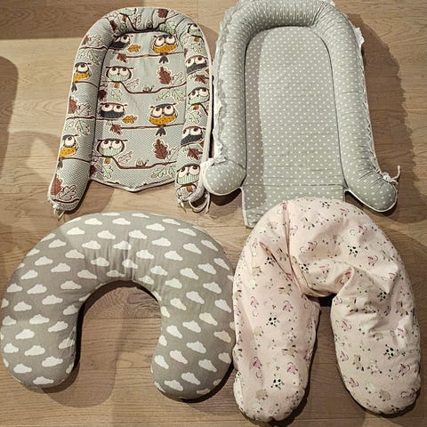 de andre er som sakkosekk puter hvor barnet former seg i den. Gode i senga.