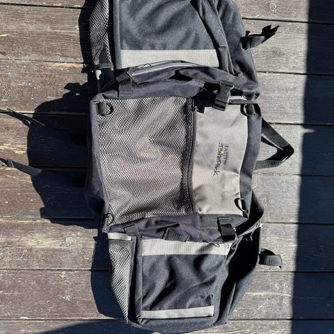 Bikepack sekk til sykkel. Med regntrekk i bunnen.