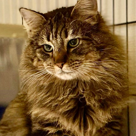 Han skulle veldig gjerne flyttet til et rolig hjem uten små barn der det allerede bor en katt slik at de kan leke sammen. Eventuelt kan han adopteres sammen med sin vakre søster Kitty: https://www.finn.no/recommerce/forsale/item/396375610