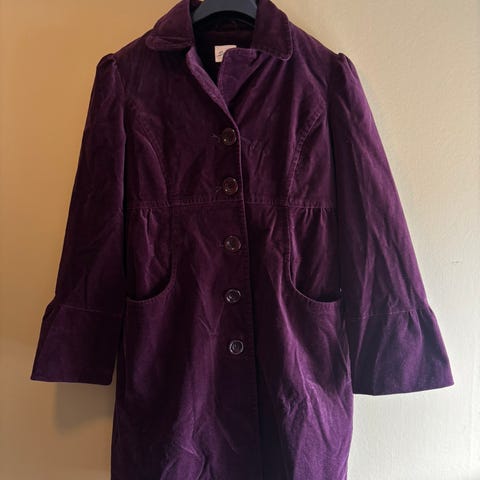 Lillafarget jakke fra b.young i str.M selges kr.100.- Den har to lommer, og belte livet som kan tas av.