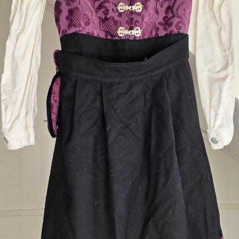 Festdrakten har lekkert brokademønster på vesten og nederst på stakken. Bunadskjorte er inkludert i prisen. Brukt kun en gang.