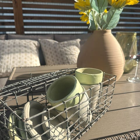 Hjemmelagde småmøbler for blomster, fint å pynte til 17 mai m/flagg, nisser og lyslenker til jul osv. blomster følgjer ikke med