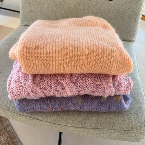 Ingen av mine ferdig strikk er dampet så de blir litt større da de dampes flatt