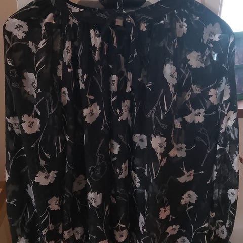 Søt bluse som dessverre har blitt for liten til meg. Den er i str s, men synes kanskje den oppleves litt liten i str. Den er i 100%viscose.