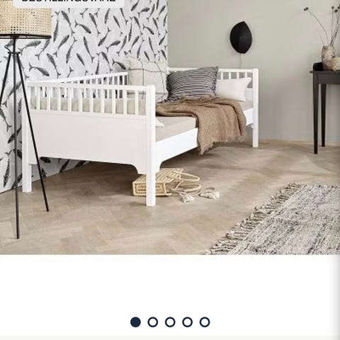 Sengen ble bygget av snekker i 2019 tilpasset et barnerom på 7,2m2. Vi har flyttet til hus med skråtak, så dessverre passer ikke sengen i nytt hus. Sengen er tilpasset 2 madrasser på 75x200. Nederste delen kan benyttes som både seng og sofa. Ledlys under sovedelen er montert på.
