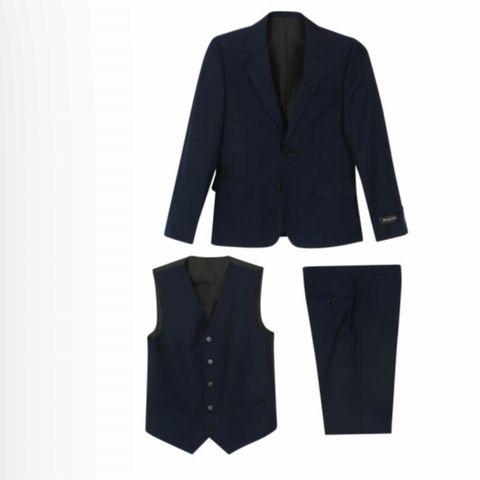 En meget elegant og tidløs kvalitets dress til gutt. Den er i 100% vevd ullstoff og renset etter bruk. Kun brukt til 17 mai og jul. Buksen er lagt opp ca. 10 cm, så her har man mye å justere på og vokse i. Romslig passform.