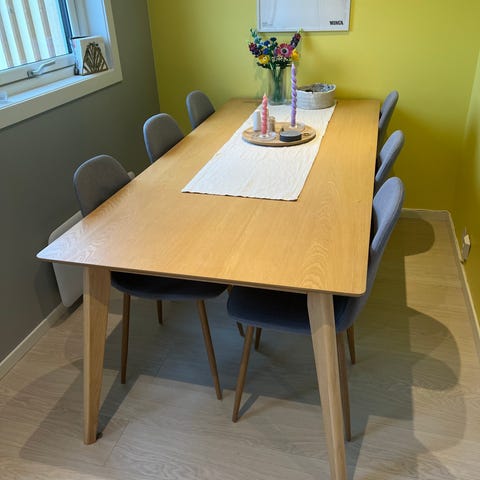 Det er god plass til 8 personer når bordet måler full lengde.