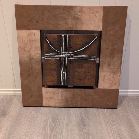 Glassfat med oppheng selges. 29,5x29,5 cm.