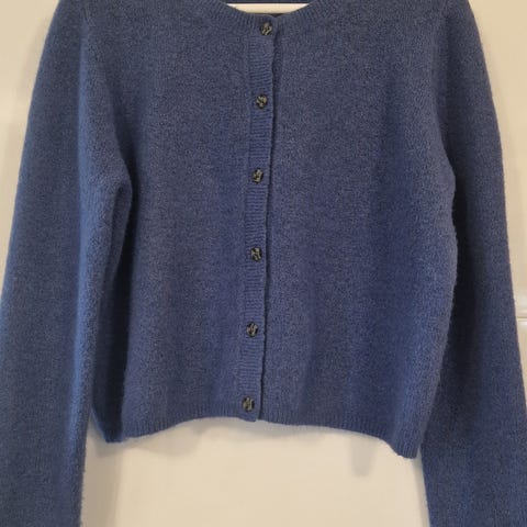 Nydelig myk og deilig ny 100% cashmere jakke med fine detaljer. Klassisk «marine look». Jakken har en kort design og rekker ca til hoftekammen.