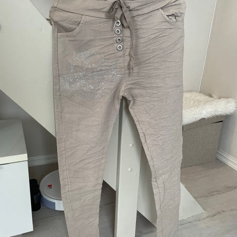 Buksen er helt ny i str. 44. God passform. Lommer forann og bak. Lengde 103 cm. God strets.