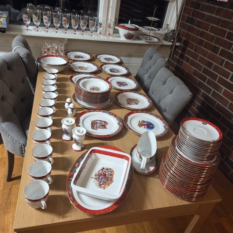Kopper, asjetter og diverse kjøkkenutstyr.