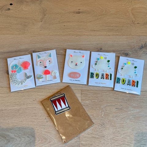 Selger noen helt nye og ubrukte iron-on patches (som strykes på klærne) fra Glitter.
