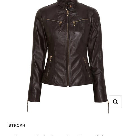 Rå skinnjakke, kort modell str 46. Dansk merke. Fint brukt. Ingen slitasje. Myk og god kvalitet.