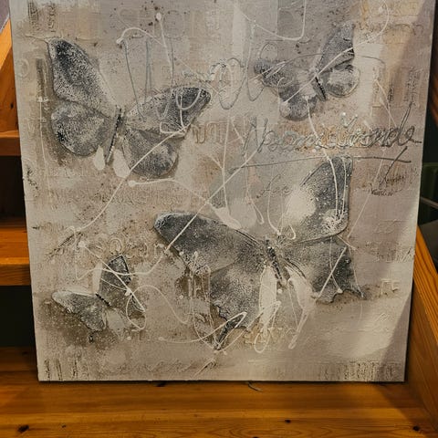 3 innrammede bilder hvor motivene er laget av sommerfuglvinger,,,,,mål 45#31cm....sjeldent å komme over bilder , spesiellt en serie....som regel blir disse laget med motiv på serveringsbrett som koster ca 400-700kr pr stk......alle 3 selges samlet for kr 800,-