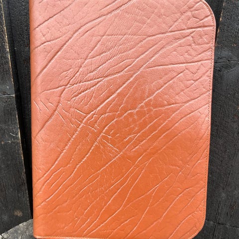 Dokumentmappen, den lyse, måler ca 45×34 cm. Den mørke- 37×27. Den lyse er også tykkere og har følgelig mer plass- se bilder. En 13-tommers Macbook pro passer perfekt i den mørke.