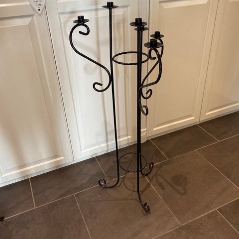 5 armet gulv stake i tungt smijern. 86 cm høy og 58 cm bred. Veldig vakker.
