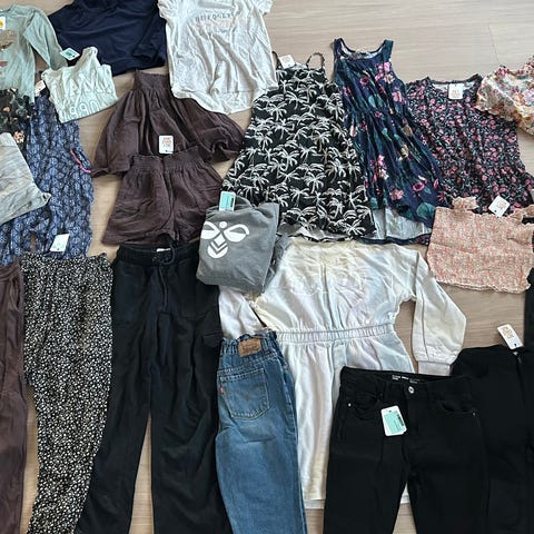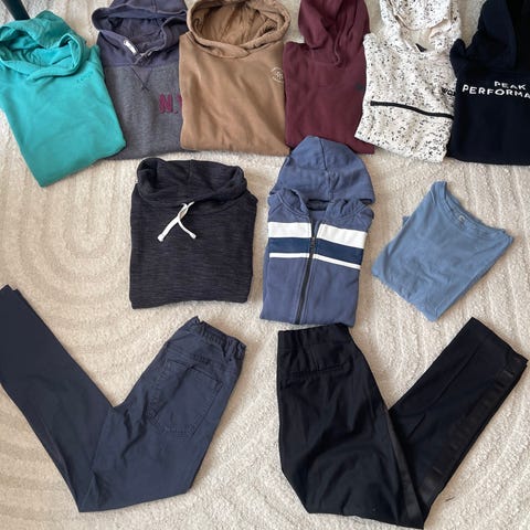 Den inneholder bukser og topper. Pent brukt og ingen skader.