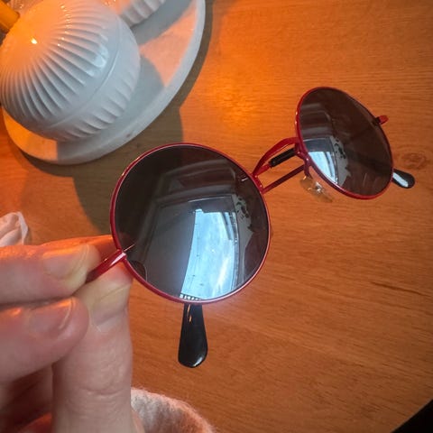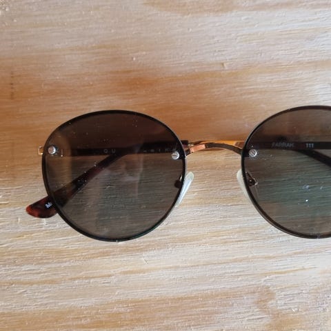 Rundt par: brunt glass, i helt fin stand, ingen merker. Gyllen ramme.