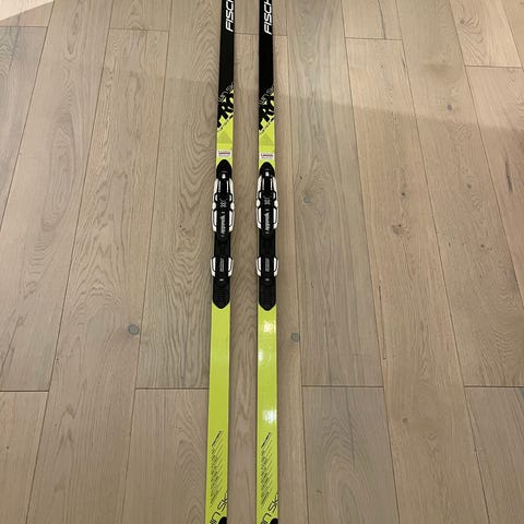 Lite og pent brukt, maks 5 turer. Noen få merker (se bilde) etter frakt av ski, gjør ingenting for bruken. Ingen riper på undersiden.