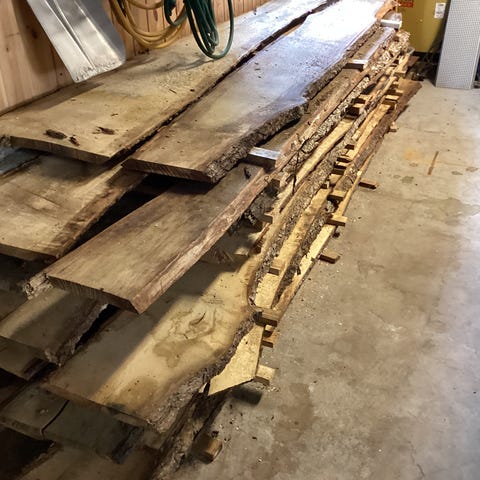 Bjørkeplanker. Tørket på låve. Brukes til møbler, etc.