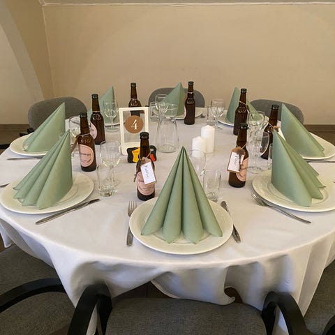 Ca 15 kvite dukar (kremfarga) til leige for jul/nyttårsfest, konfirmasjon, dåp, bryllup, bursdag, selskap etc. Litt ulike lengder og mønster i stoffet, men dei går fint sammen på langbord og småbord (rektangulære, ikkje runde).