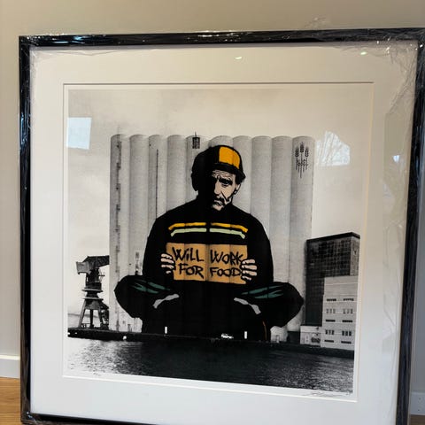 Pent trykk av Kristian Finborud. Varme toner av blått, lys oransje og brunt. Profesjonellt innrammet. Ramma er i sølvfarge med litt innslag av oransje som tar opp fargane i bilde på ein veldig fin måte.