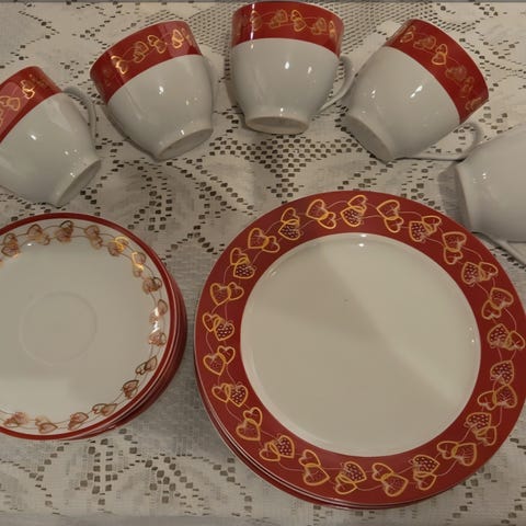 Jeg har også blått kaffeservise, samt tallerkener og andre deler til salgs i andre annonser her inne.