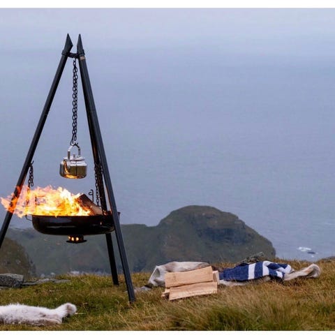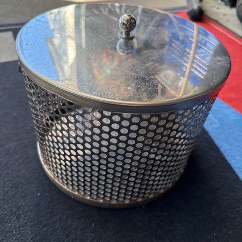 Spesialdesignet perforert kjele for popcorn. Med lokk og håndtak for oppheng over bål. I rustfritt stål. 10L