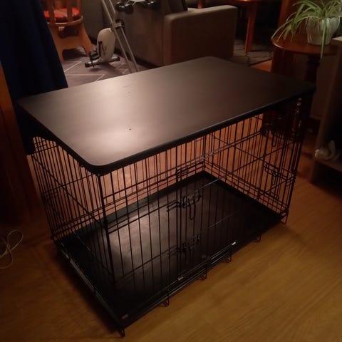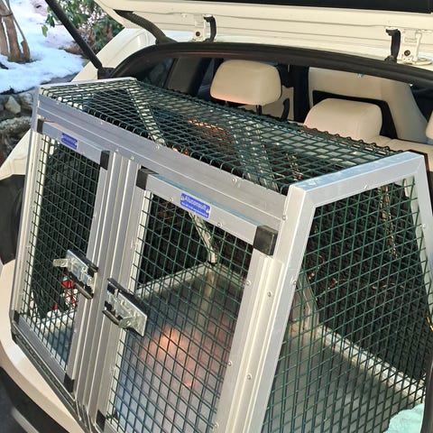 Solid hundebur i stål. Knirker ikke og kan låses med hengelås om ønskelig. Har tidligere stått i Ford Mondeo. Har blitt brukt til bl.a Golden Rettriver.