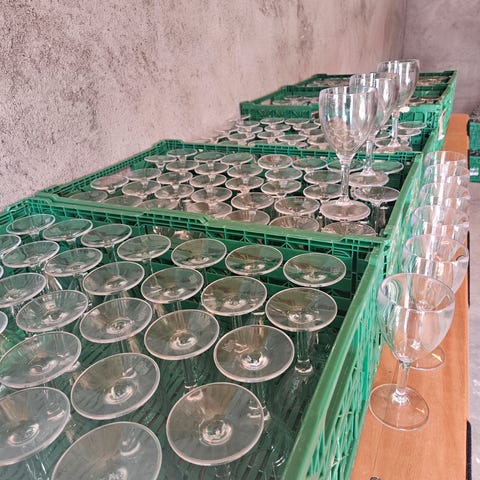 2 hvitvin, 4 hetvin, 1 stort drammeglass, 2 små drrammeglass