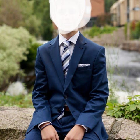 Fin mørk blå dress fra dressmann. Slim fit. Str.48