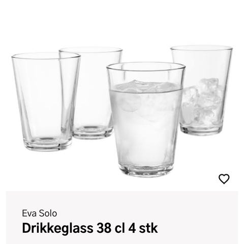 Selger mine flotte Fasett vannglass fra Eva Solo som nesten ser helt nye ut! 12 stk. selges for 100 kr. per glass. Kan også selge 6 stk.