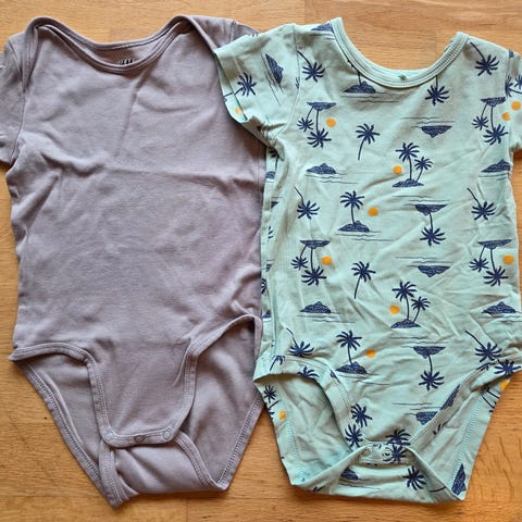 Pakke med tre bomullsbodyer i størrelse 98. Brukt et par ganger før bleieslutt.