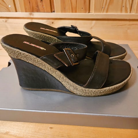 Sandaler med kilehæl i str 37/38 selges for 200kr. Kun brukt en gang, behagelig å gå i. Kan sendes mot portotillegg.