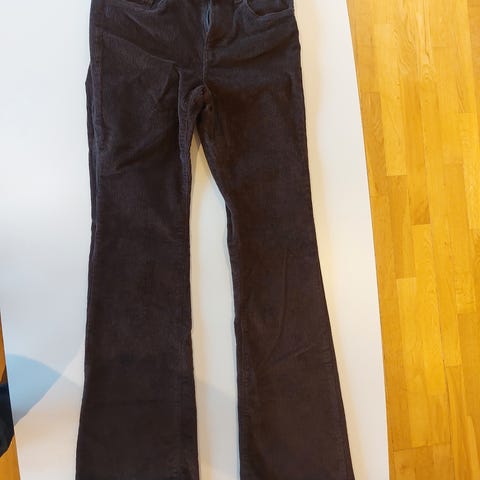 Mørk brun knebukse i cordfløyel fra Ril's i størrelse 40. Livvidde er 86 cm, skrittlengde 24 cm og indre benlengde 57 cm. Laget av en blanding av bomull og elastan, god stretch i stoffet. Hemper for belte, hoftelommer og lårlommer og knapper nederst på beina. Pent brukt uten flekker eller slitasje, men mangler litt tråd søm på innsiden ved høyre lomme (se bilde 7)-har ingen betydning for bruk.