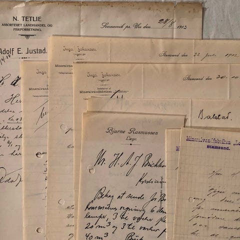 Gamle dokumenter, brev, postkort fra Kristiansand, Vest-Agder.