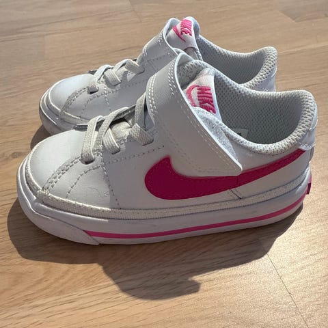 Nydelige sko fra Nike, hvite / m. lyserosa merke. Str 23,5 - 13 cm såle. Pent brukt til en jente. Kan sendes.