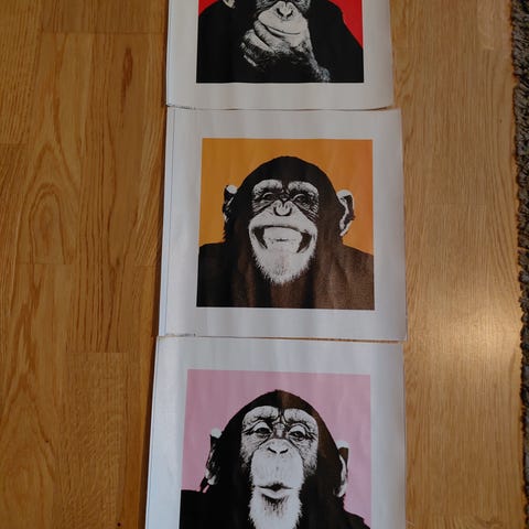 Tøft bilde, ape som spiller sjakk. Str.34 x 44 utvendig mål på rammen. Kan sendes mot frakt kr.135