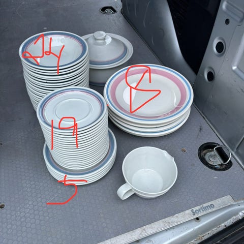 6 stk skjønne frokost tallerkner selges med matchende teppe
