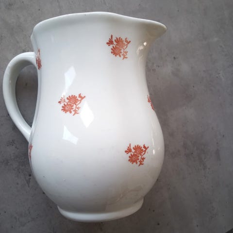 Hvit mugge med blått mønster fra Arabia, Finland selges. Kan sendes.