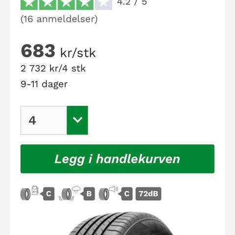 Nesten ubrukt dekk til BMW 520. Fersk dekk, kun et år gammel. Selges uten felg. 225/50R17, 205/60R16 bak/foran.