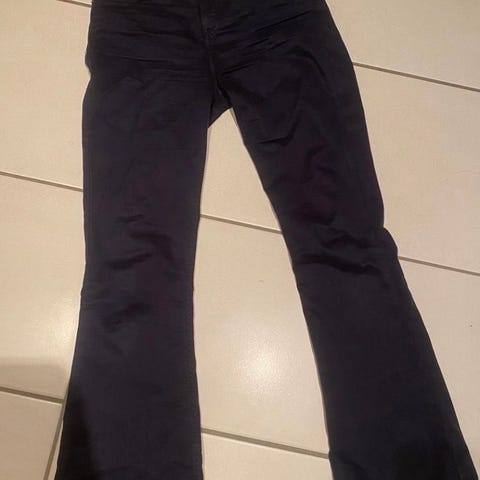 Vintage Y2K svart ICHI jeans/bukse selges. Vil tro størrelsen er strl XS/S. Slitasje nederst på ene beinet. Den har noen flekker her og der. Mulig den kan farges eller ordnes på noe vis. Noe bruksmerker. Selges som den er. Se bilder.
